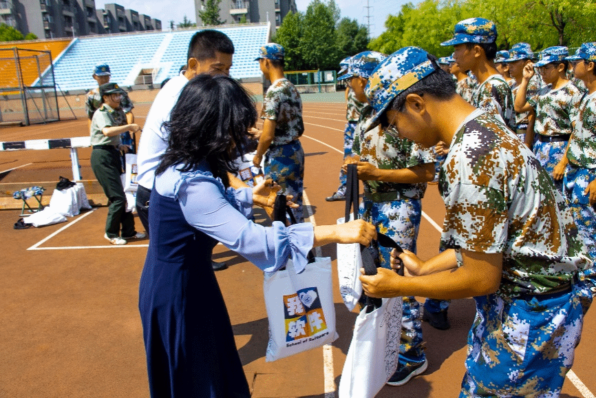 院长郑江滨、党委书记李晗、副院长马春燕、党委副书记陈博一行前往军训场地,亲切慰问了2023级本科生,为军训中的学生送上了关怀和鼓励。