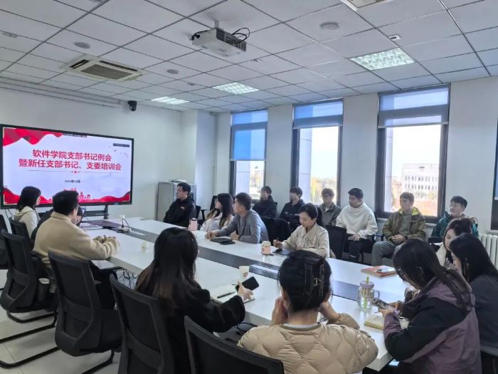 在启翔楼303会议室成功举办了支部书记例会暨新任支部书记、支委培训会。党委书记李晗、党委副书记陈博、组织员刘凯、学生党建相关负责老师、各支部书记及支委共计20余人参加了此次会议。