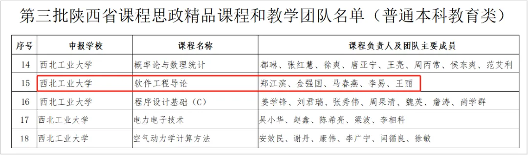 郑江滨教授团队负责的《软件工程导论》课程成功入选。