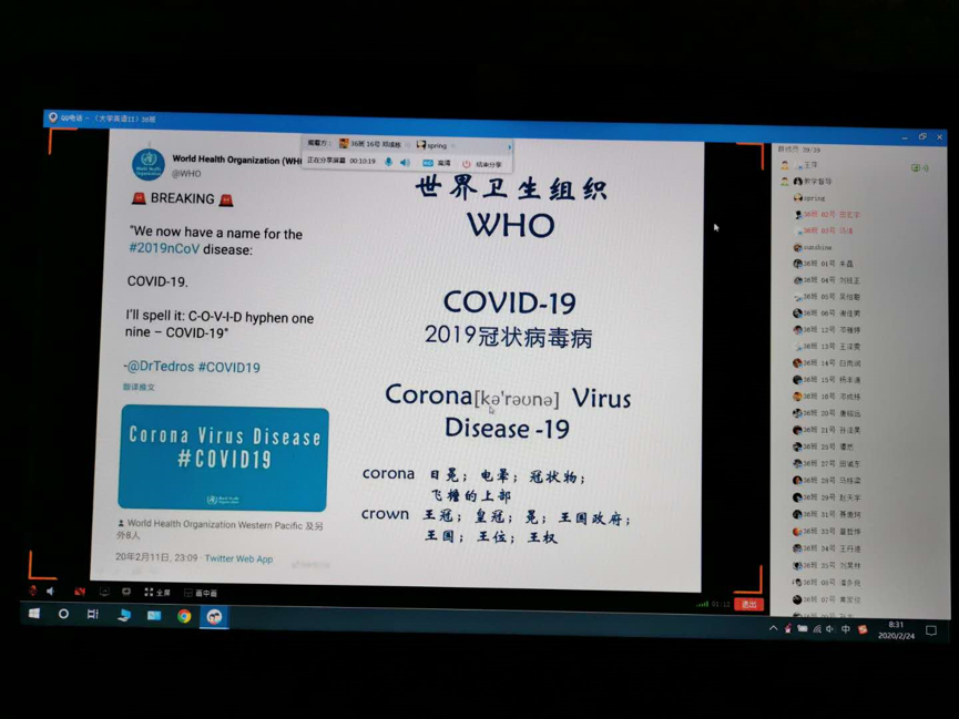 在线教学第一天,全体学工干部积极主动“进网络”、“进课堂”、“进学生”,全面了解学生线上学习和老师线上教学状态,第一时间掌握课堂信息,记录在上课过程中存在的问题,全面做好疫情防控期间学生线上教学相关保障工作。通过对《计算机网络》、《软件工程文档写作》、《数据库系统》、《大学英语(Ⅱ)》等课程的线上教学情况的深入了解,收集师生反馈意见,绝大多数课程运行状态良好,网络通畅、声音清晰、学生到课率高、师生互动较好,学生对在线课堂的氛围和效果比较满意。