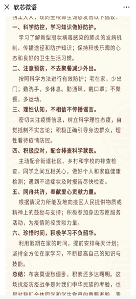 研究生第一党支部通过在各种社交媒体上科普新型冠状病毒感染肺炎症状,宣传口罩的辨别方法和日常防护和消毒方法等线上方式正面引导,做好防控宣传;并组织学生党员在家中进行跳健康操、跳绳等活动,锻炼身体,增强免疫力,保证良好的体魄。