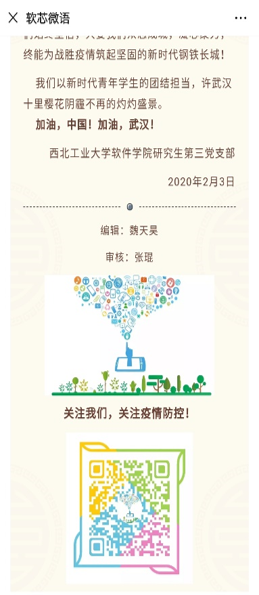 研究生第三党支部通过发起倡议信,号召支部党员,在精神和行动上支持这场疫情战,自发组织捐款献爱心,并将筹款捐献给湖北武汉的同胞们。同时,组织研究生分享考研经验,面向大二、大三、大四年级,开展关于计算机/软件相关专业考研指导义务直播,使学生在居家期间学有所获。