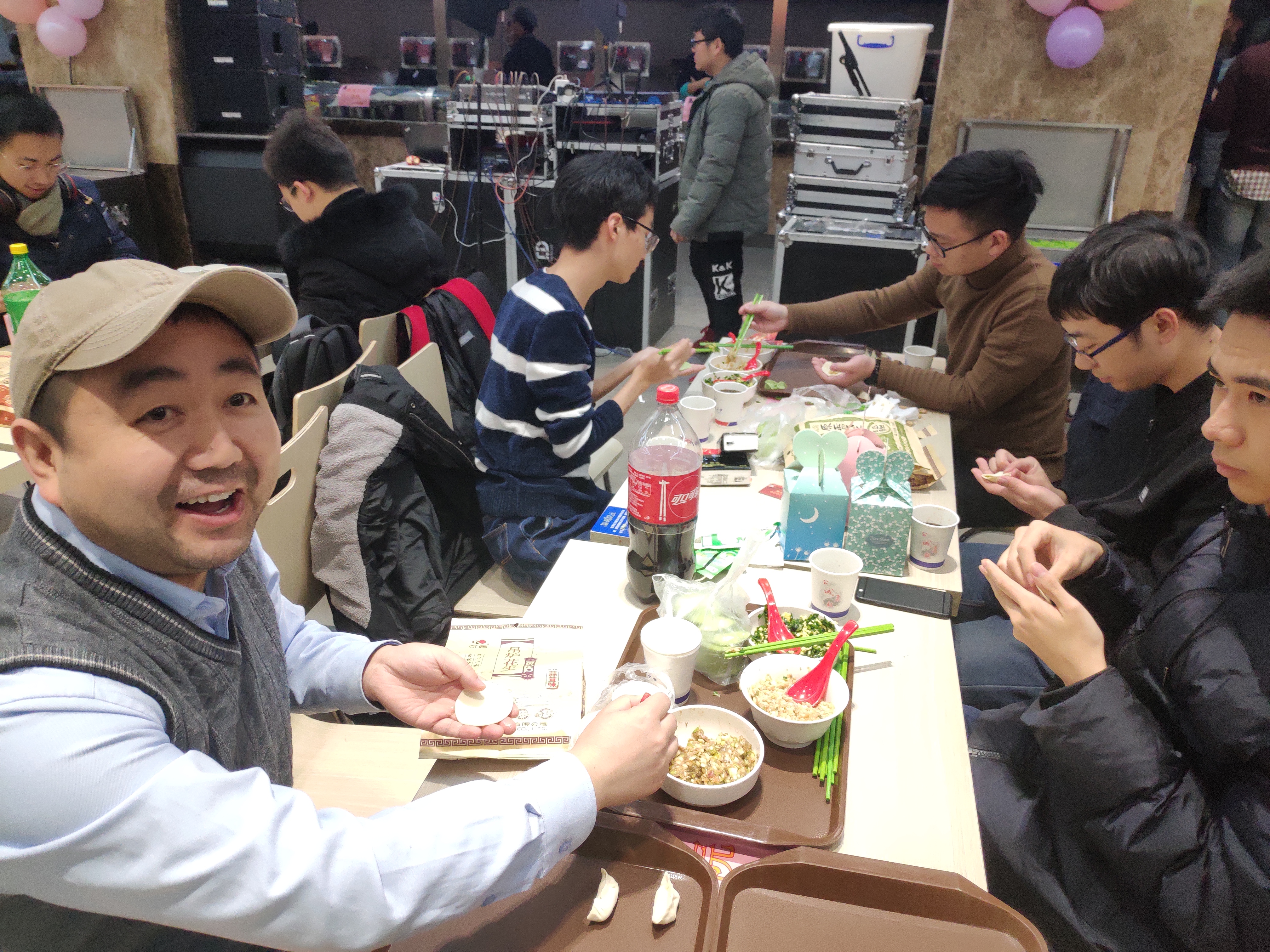 下午四点左右的学生第一餐厅已是人山人海,人满为患。学生们在安全员的引导下早早地进入餐厅,感受新年氛围,着手包饺子。随后张艳宁、陈洪亮、郑江滨、王犇、黎昞、齐春晓老师先后加入包饺子队伍。在这拥挤的食堂中,来自不同JavLibrary