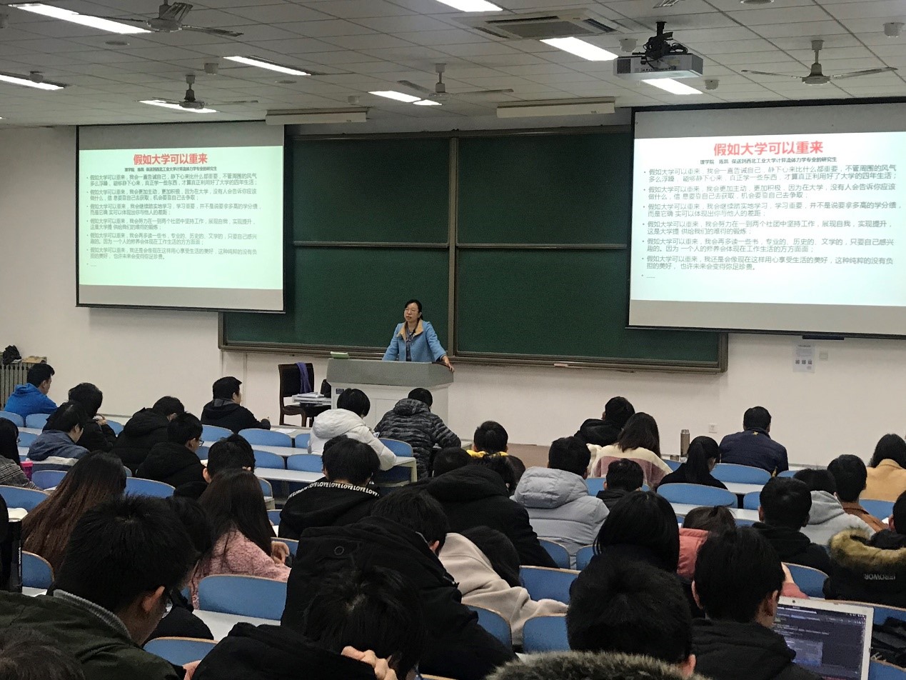 如何对人生负责,如何对未来负责,如何为就业做准备,到底是就业还是考研或是出国呢?假如大学可以重来,你觉得哪些事情可以重做,你会有什么样的选择?面对未来的可能选择,你改如何做!张琨老师在讲座一开始,提出了一系列问题请17级的同学们思考。她指出17级的同学都是优秀的学生,但是在大学的学习生活过程中,在慢慢长大的过程中有人离曾经的自己渐行渐远,有人很久都没有拿出过一本书安安静静地看,有人忘记了曾经热爱的事情。现在是时候静下心来,认认真真的想想自己的未来和人生该怎么过。