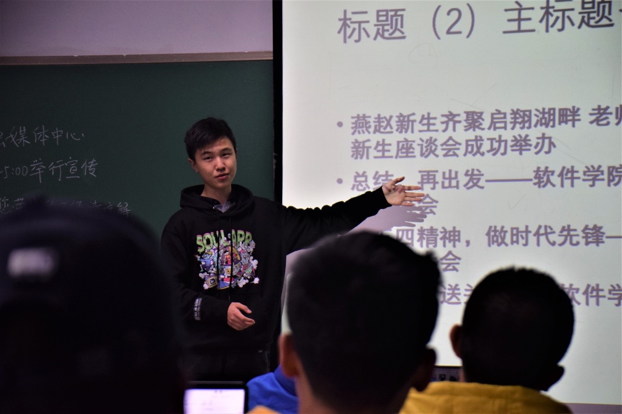 微信公众号运营团队的主要成员,他凭借自己丰富的微信推文制作经验,从微信编辑器与微信内容的选取两个部分着手,并就如何进行图文排版,如何加logo和工作人员,如何将图文复制到微信公众号这几个部分进行了具体的讲解,让所有宣传委员对微信的制作与运营有了更加细致的了解。