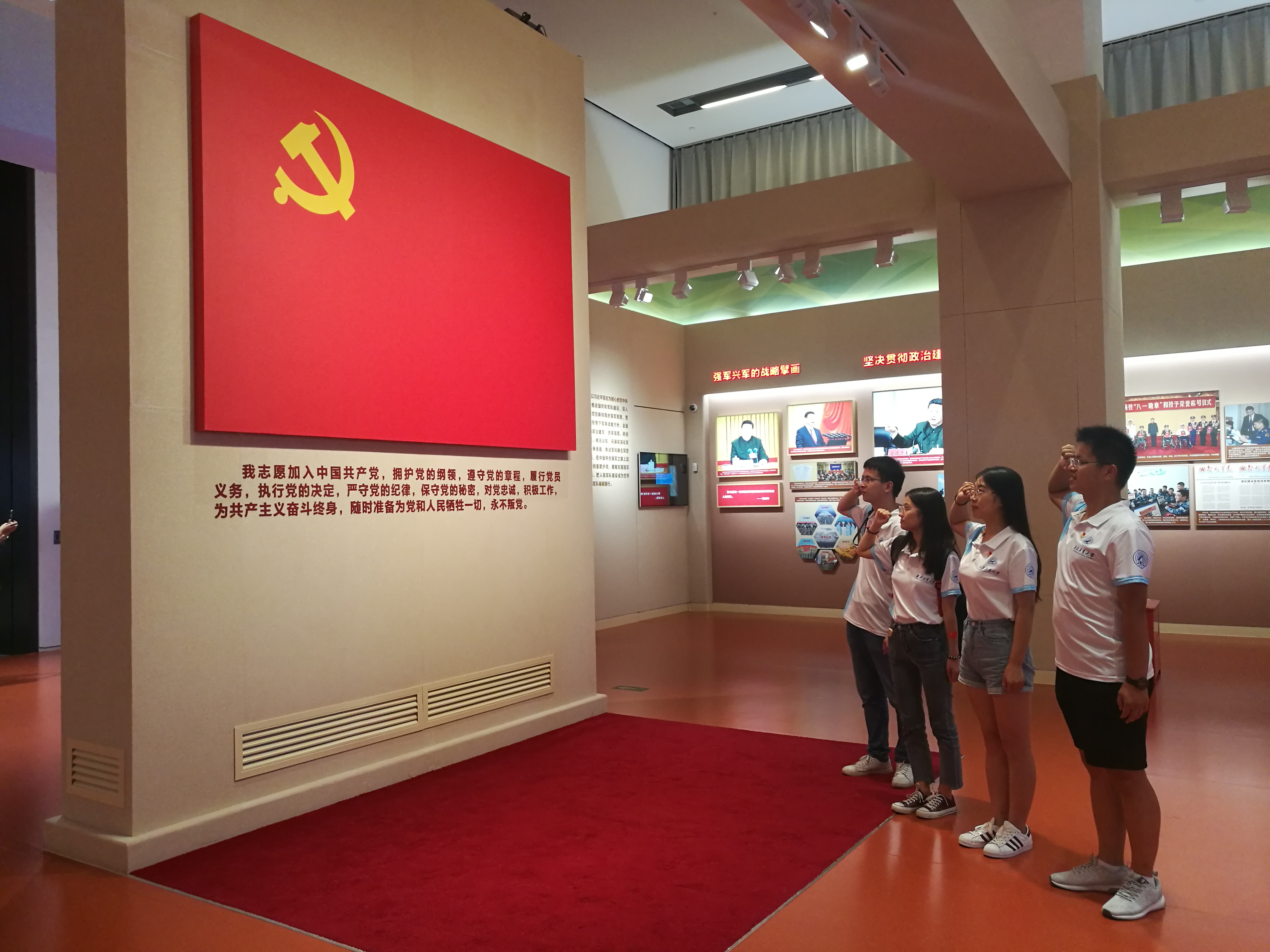 党委关于开展“不忘初心、牢记使命”主题教育的要求,阐述了主题教育活动的意义后便组织观看开国大典彩色记录影片,而后探寻新中国成立70周年以来的辉煌巨变,探讨青年学生党员身上所肩负的历史使命。主题学习讨论后,支部书记胡轩豪同志带领全体党员进行新时代青年学生党员主题宣誓。