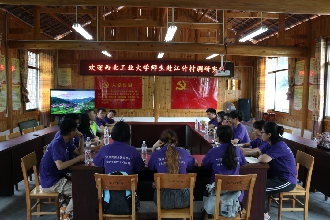 驻村扶贫干部、江竹村第一书记方原与罗老师带领同学们至江竹村,举办座谈会。方园书记为同学们介绍了江竹村基本脱贫情况,党支部党建工作,讲解国家精准扶贫政策。在介绍完基本情况后,方原书记也对青年学生在扶贫工作中贡献力量提出了期待,鼓励大学生上山下乡,扎根基层,服务基层,奉献基层,为基层工作注入一丝新鲜的血液。