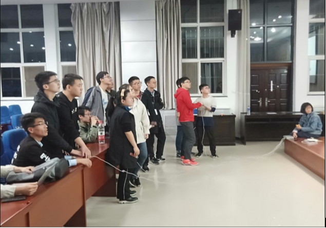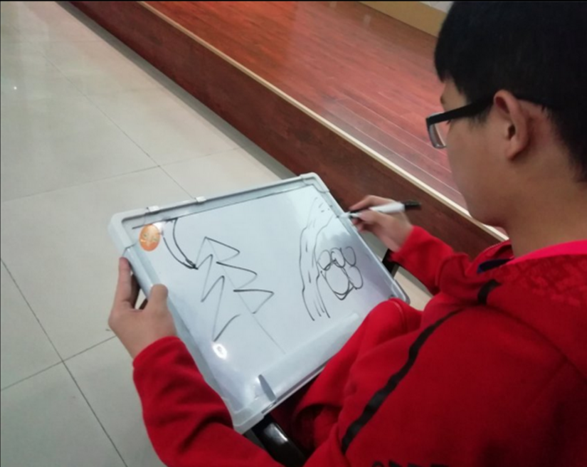 第二个环节是“你画我猜”,既考验了小组同学间的默契度,也反映了他们的诗词素养及绘画能力。当然,现场效果表明我们的参赛选手们非常优秀,多个小组都答题成功。下图所展示的便是其中一个小组的作品——“明月松间照”,可以看出绘画者的临场反应能力不错,简单几笔便能勾勒出一幅诗意盎然的意境。