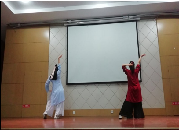 在半决赛中我们使用了新道具——抢答器,主持人会在大屏幕上放出一张逐渐完整化的图片,同时图片下方还会给出字数及诗句内的一个已知字的提示,选手们想到答案后要在第一时间按响抢答器。季军争夺战采取的是 1V1飞花令的方式,冠军争夺战采取的是二倍条件限制的飞花令,比赛中间我们还为参赛选手们带来了一场汉服舞蹈表演,更深的感受中华文化的魅力。