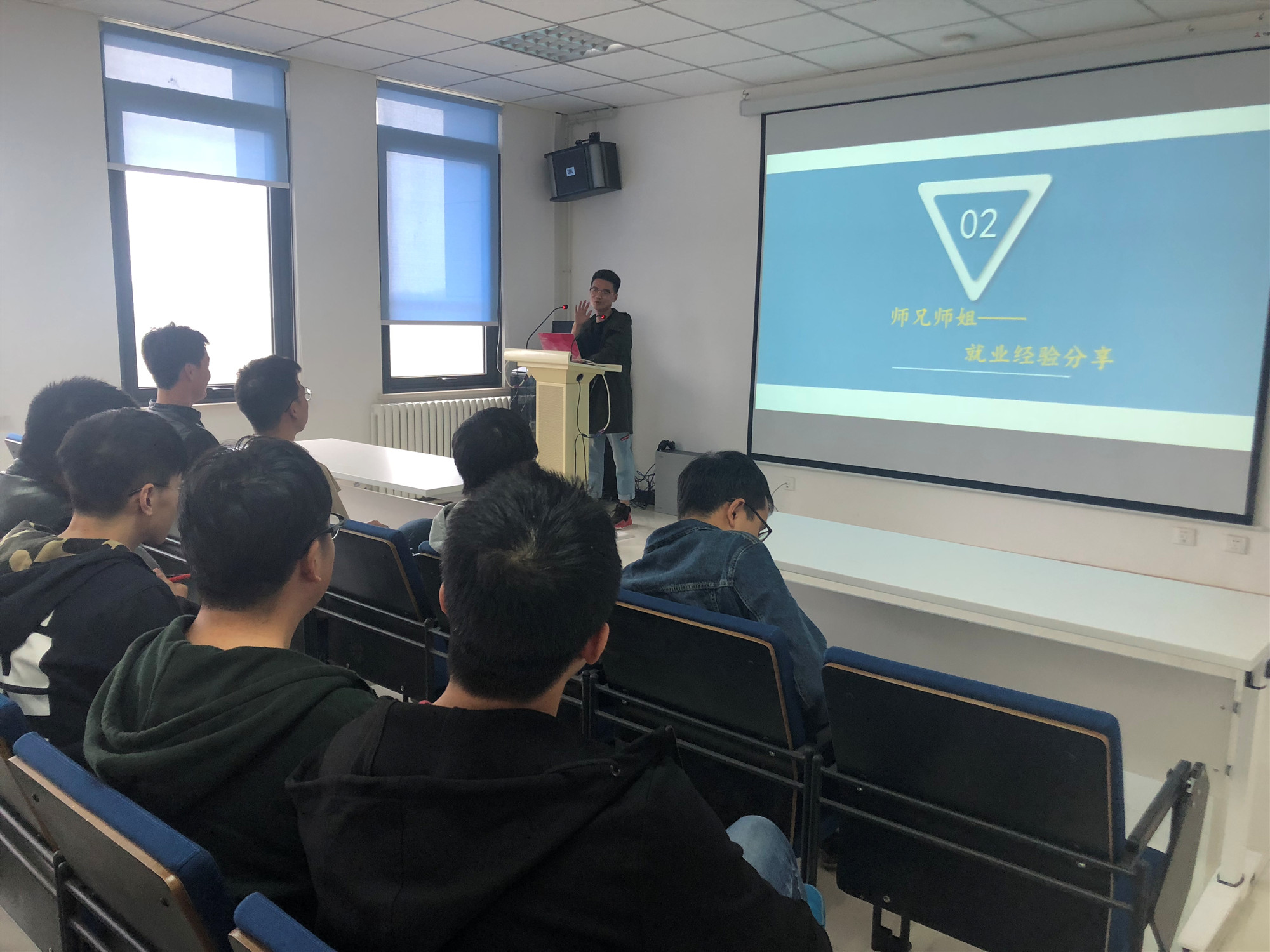 邀请到了今年签约腾讯、阿里、华为等知名公司的毕业生前来分享就业的经验。在经验分享过程中,签约北京还是科技有限公司的2019届毕业研究生肖金霸为大家分享了自己在就业过程中的经验,希望大家都能打好坚实的技术基础,为顺利签约做好铺垫;签约浙商银行的卜迪说到:“研究生在学习科研中要善于发现问题,同时还要积极解决问题。只有在发现问题并努力解决问题后,自己的能力才会得到更好地提高。”签约阿里巴巴的张仁宇曾在美团、腾讯等知名公司实习,他为大家分享了自己的实习经验和投递简历的技巧,在座的同学们纷纷表示很为受用;签约华为的王文杰询问到师弟师妹们目前的实习情况,并为大家分享了实习与签约之间的联系,希望大家都能把握好实习的机会;同样签约华为的朱皓谈到研究生要尽早对自己的未来进行规划,同时要树立好自己的信念与信心,并努力朝自己的规划目标去努力。会后,2017级、2018级研究生与师兄们积极沟通交流,关于实习的疑惑、就业方向的选择、就业单位的选择方面都进行了深入的交流。