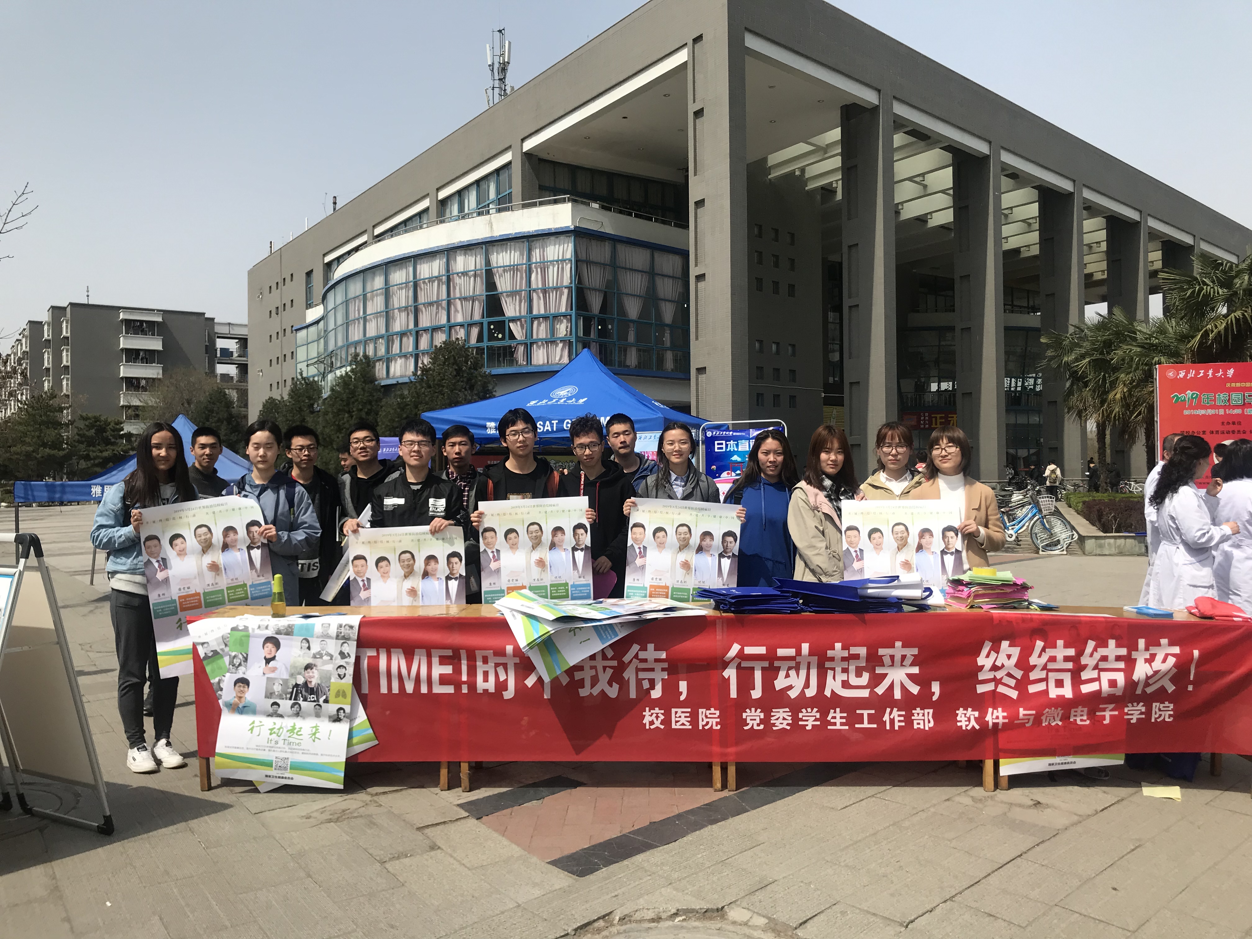 携手校医院、党委学生工作部开展结核病防治的宣传教育活动。