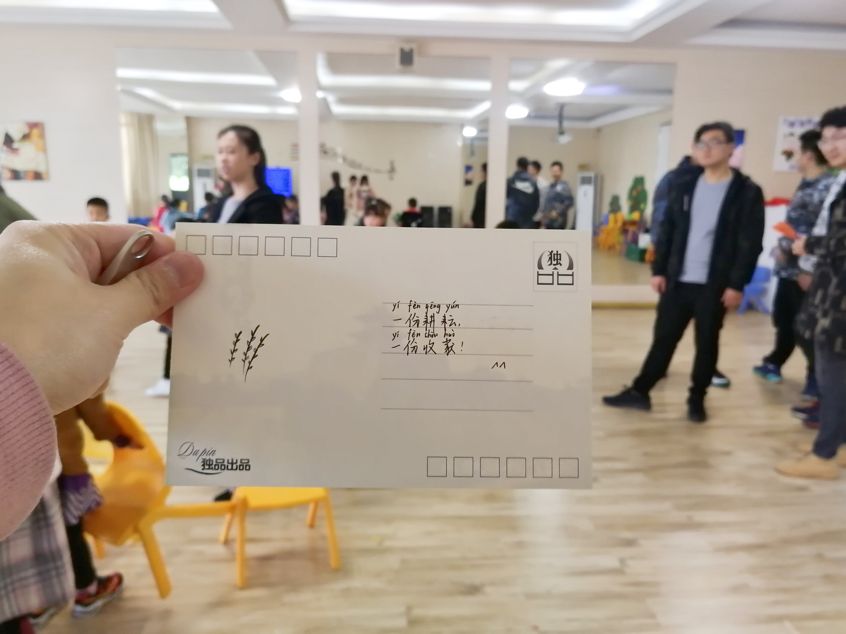 地点的更改让我们不得不重新规划整个活动,开始准备的明信片,写上去的话怕小孩子看不懂,特意标注了拼音;原来的ppt上感人的小故事,用班长的话形容是“这些故事帮怕是会对小朋友留下阴影,帮助别人非死即伤。”情感牌对小孩子不好打,于是我们不得不将故事改为通俗易懂的积极向上的小故事;小朋友们最喜欢的应该是最游戏吧,可是老鹰捉小鸡、丢手绢等都被我们接连的pass掉了,理由是,孩子们太小了,做这种游戏怕磕到碰到,于是我们想了一个既能让他们开心,又可以避免活动意外的小游戏—折纸。这边火热的准备着,而我悬着的心却放不下,生怕老师忽然改了主意,或者原本定好的时间忽然被占用,直到出发前一刻,我没有收到计划要再更改的通知,悬着的心才放了下来。