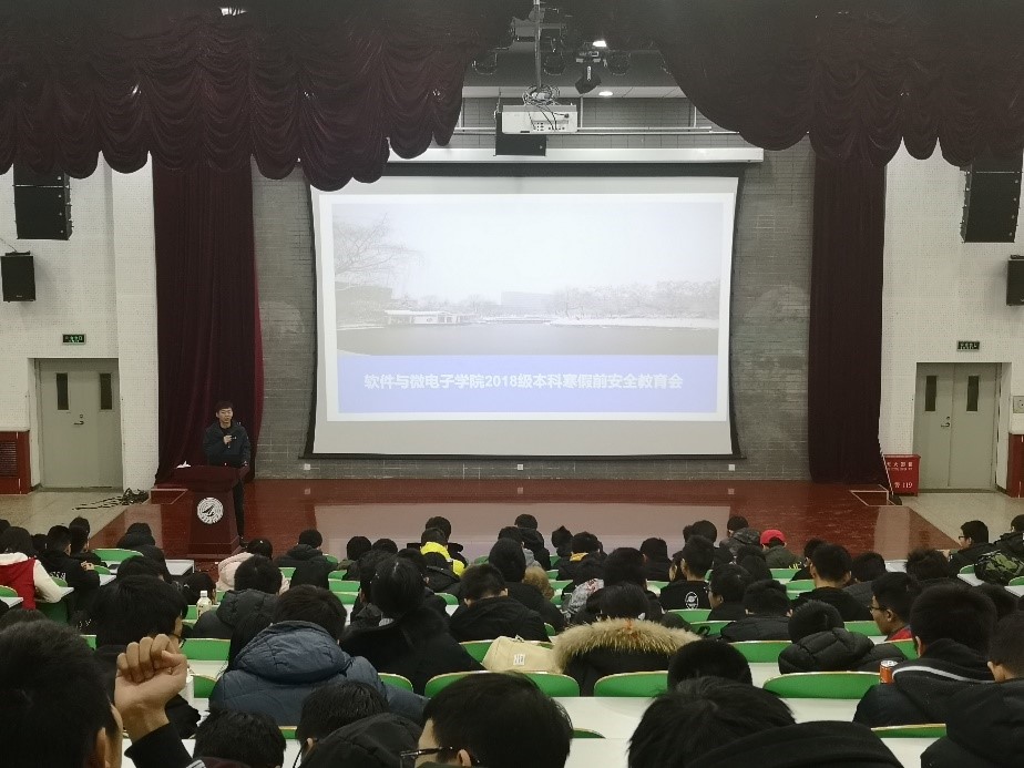 在教西A100报告厅召开了2018级本科寒假前安全教育大会。会议由2018级本科生辅导员樊超老师主持,2018级全体本科生参加了此次会议。