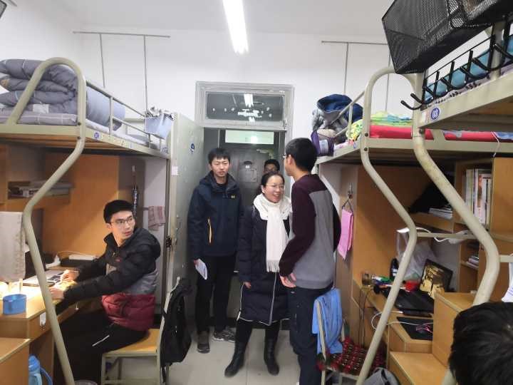 在慰问过程中,张琨、樊超挨个探访了学生们的宿舍,与学生进行亲切交谈,问候学生的近来生活学习和期末考试情况,细心询问他们的离校时间与回家方式,并耐心嘱咐他们要注意宿舍卫生和回家安全,提高安全意识,防盗防骗,提前祝福大家新年快乐。