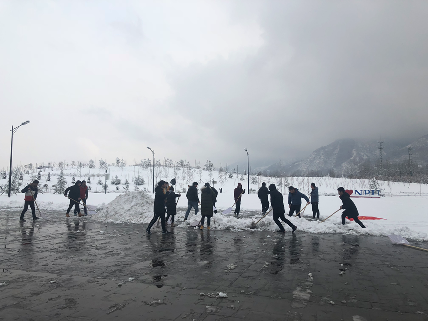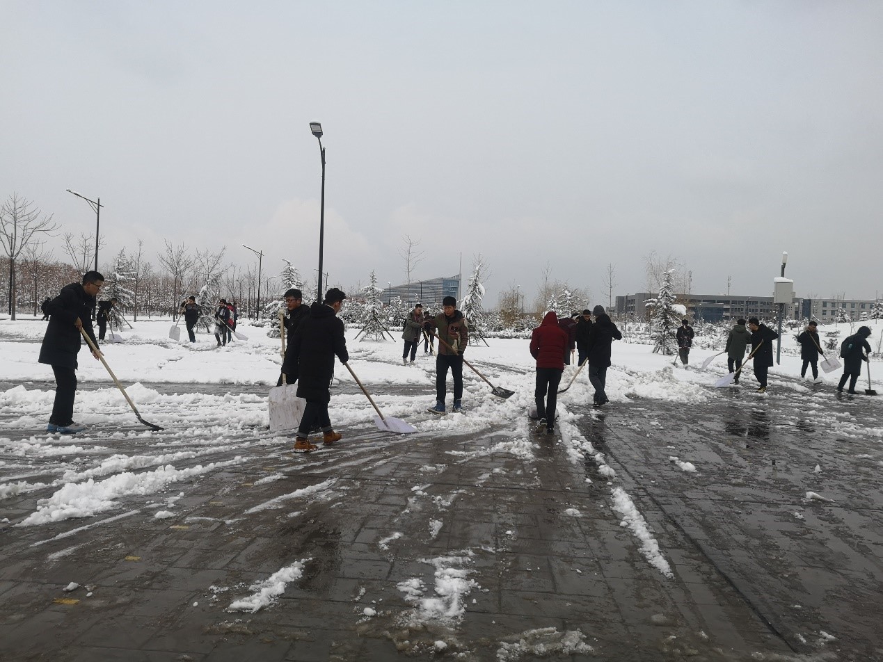 学生辅导员杜逸芸、樊超、陈智通老师,以及部分研究生、2017级、2018级本科生参加了此次扫雪活动。