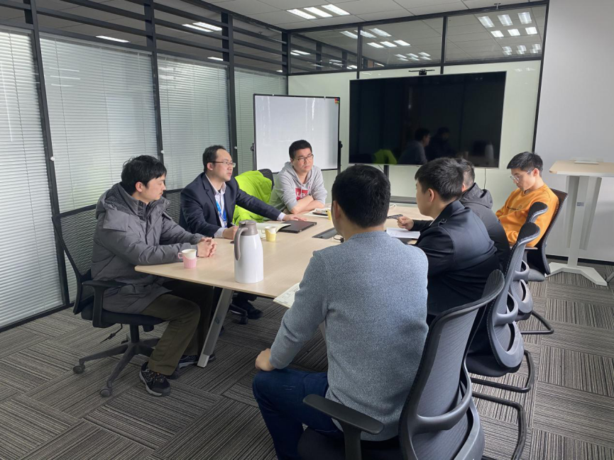随后,移动公司李革工程师介绍了近期有望开展合作的两个项目:智慧安防以及产品检测。智慧安防项目是中国移动公司太仓新区分局与太仓市应急管理局及当地企业开展的项目,以期利用视频图像分析技术,对安全生产相关问题,如危险源及危险动作进行识别与分析,开发出敏感、清晰且针对性强的系统;产品检测主要期望借助图像识别对生产线上的产品进行快速扫描,通过图像技术检测已扫描产品存在瑕疵并作出反馈处理。王兵书、干红平、方振宇老师表达了合作意向,向李革进一步了解了项目情况,并对重点技术问题交换意见。