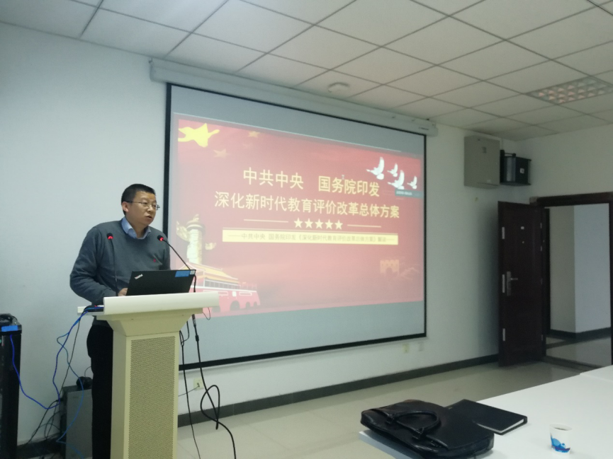 党委书记陈洪亮带领大家学习了《总体方案》的主要内容,包括总体要求、重点任务、组织实施三个部分,陈洪亮着重为大家阐述了重点任务中改革教师评价和改革学生评价两个部分,并就当前JavLibrary