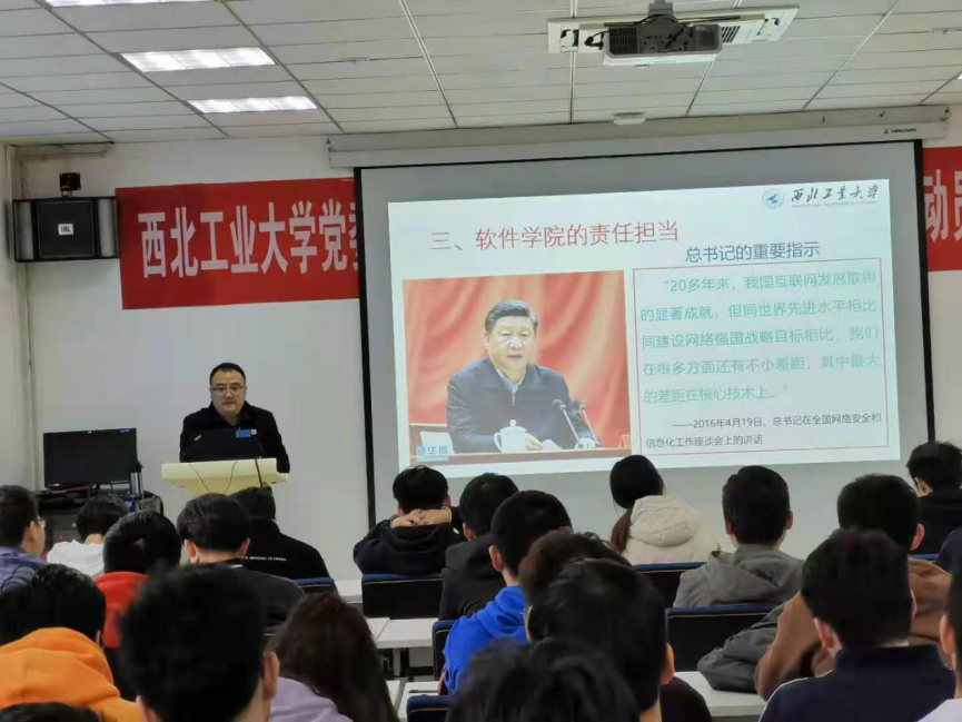 院长郑江滨以“软件定义未来”为题进行讲授,2021届全体硕士毕业生参与此次教育活动。