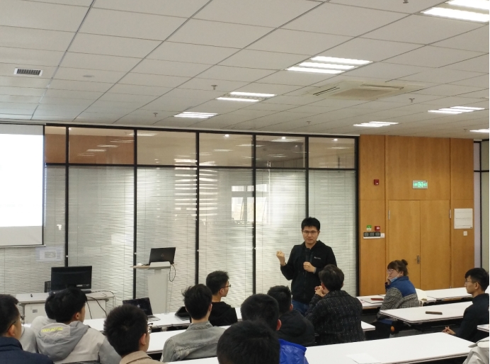 太仓校区在长三角研究院203教室召开出门问问公司宣讲交流会,宣讲主题为AI语音交互技术交流及应用场景分享,宣讲会由高利鹏老师主持。