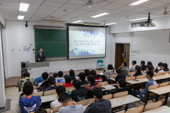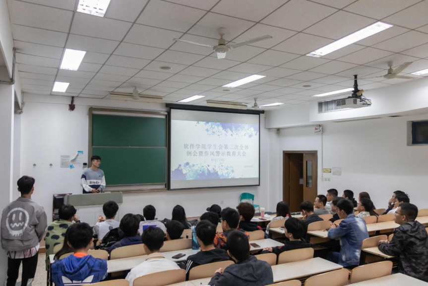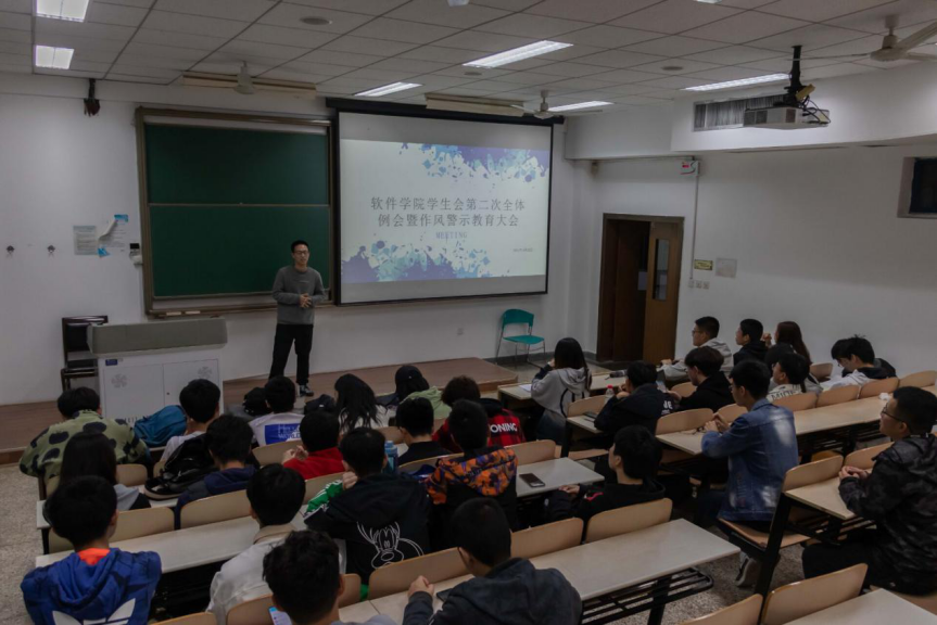 学生会第二次全体例会暨作风警示教育大会在教西C108召开,会议由主席团成员石一鹏主持,JavLibrary