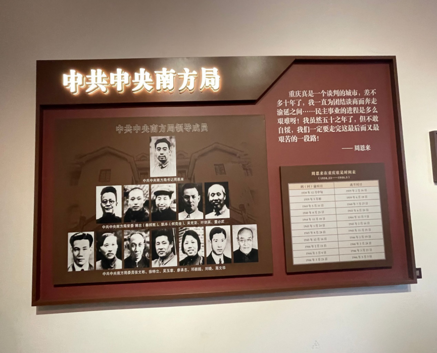来到二楼,看着屋子里的桌椅陈设,玻璃展柜里的一份份书信,一张张照片向我们讲述着这里曾发生的风云往事与革命的艰辛,70多年前周总理和董必武与党内外人士商谈时事的场景,仿佛重现在眼前。他们在这里默默地书写着历史,心系同志、团结奋斗,用生命吹响斗争的号角。