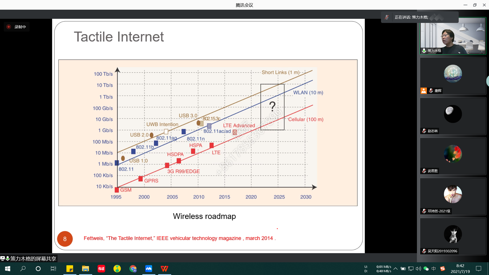 2021级研究生):在7.19-7.23这段本该放暑假的日子里,策力木格老师仍然抽出时间给我们讲述智能物联网方面的前沿知识。短短的五天时间一晃而过,然而老师总是能以先进的教学手段,理论联系实际,教学内容信息量大,重难点突出;从计算机网路技术和无线网络基础到新兴的物联网技术和边缘计算,再到物联网与计算智能集成的未来研究方向。我深刻的体会到了物联网发展历程与技术壁垒,受益匪浅。未来物联网的发展方向将向平台化、数据化和智能化方向发展,物联网最终的诉求将是“万物互联、万物智能”。物联网的平台化趋势是行业发展的必然,只有物联网实现了平台的规范性才能获得更大的发展空间。希望谨记老师教诲,学好专业知识,探索“万物互联”的新时代!