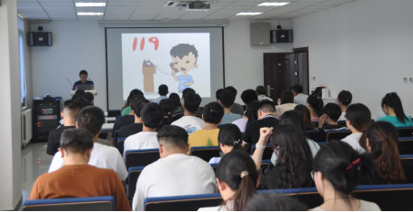 保卫处消防科胡涛老师从火灾类型、火灾疏散、逃生技巧和高校学生宿舍的火灾隐患等方面分享了消防安全基本知识。他表示,电气火灾数量位居各类火灾之首,学生要规范用电,不要私接电线和使用违规电器,从自身做起维护学生宿舍的正常学习、生活秩序,切实保障自己和他人的人身和公私财产安全;面对火灾,要在准确判断危险地点和逃生方向后进行火场逃生,要做好个人防护,防止吸入大量浓烟导致窒息、中毒的二次伤害;在确保个人安全后,及时拨打119进行报警,挽救更多生命。他还特别强调了电动车的使用规范及其燃爆的严重后果,呼吁师生选用正规厂家的产品,严禁电动车进入楼宇。现场播放电气火灾、如何正确拨打119、电动车起火的短片,形象直观地展示了火灾的危害,起到了警示作用。