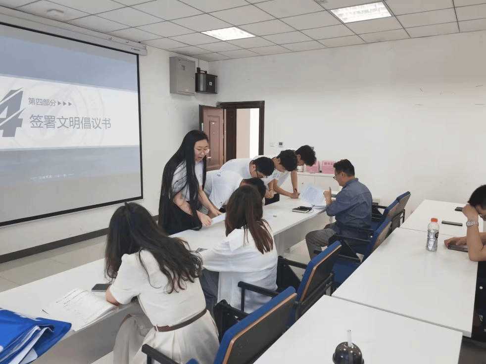 紧接着,2023年寒假优秀实践队队长潘泽铭进行经验分享,提出丰富内容、明确分工及重视宣传三点重要建议。随后吴思远宣读文明倡议书,各实践队队长签署文明倡议书,并庄严宣誓:保证在社会实践期间,严格遵循“公诚勇毅”校训,秉承“三实一新”校风,躬身实践,运用专业知识,传播先进文化,坚持知行合一,注重在实践中学真知悟真谛、在磨炼中增长真本领。以最饱满的热情和最高昂的斗志,保质保量完成各项实践任务,彰显工大学子青春风采!