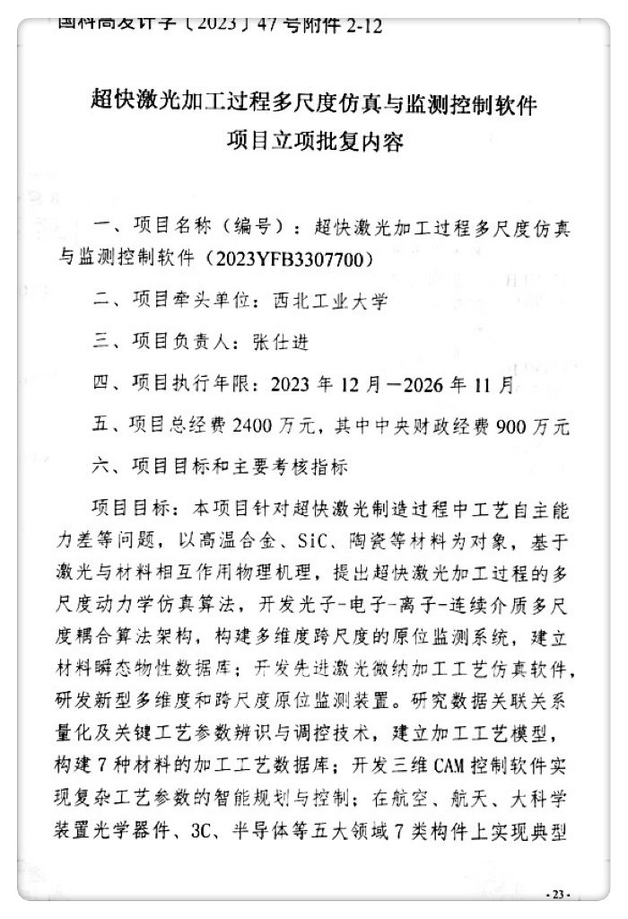 张仕进教授主持的“超快激光加工过程多尺度仿真与监测控制软件”项目获批立项,项目总经费2400万元,其中中央财政经费900万元。这是JavLibrary