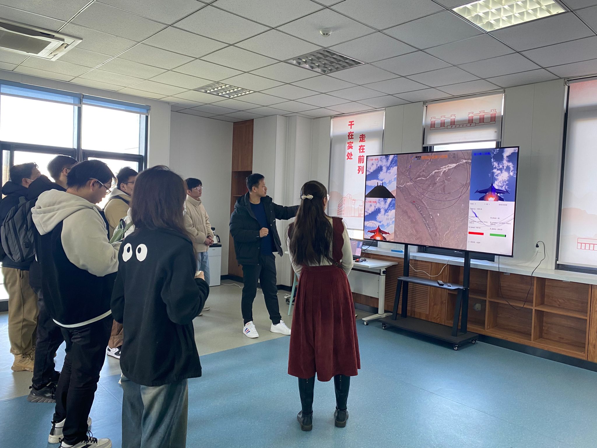 智能计算方向负责人马城城做智能计算方向项目报告,从产品的主要参数及场景应用等方面介绍项目情况,并在启翔楼301现场动态展示了NPU智能计算平台开发及智能场景应用。