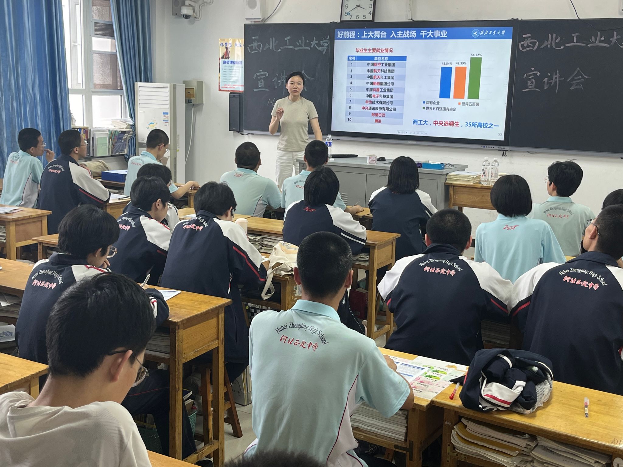 4月13日应邀赴河北正定中学参加“同育拔尖人才 共筑成长之路——2024中国著名高校正中行”活动,李晗代表西工大河北招生组录制高考加油视频。下午,李晗、张欣颖分别走进正定中学两校区,向正定中学高中生开展了4场招生宣讲,详细介绍西工大的“五好”优势——厚重办学文化、学科建设、师资力量、多元化人才培养模式和招生政策等内容。