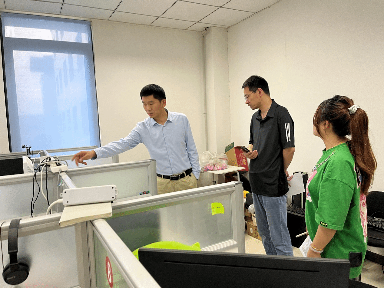 各楼层实验室、公共及办公区域进行了全方位的检查,针对发现的杂物堆放、公共设施及环境卫生等问题及时登记在册,现场提出整改意见,并告知实验室相关负责老师,叮嘱各实验室的同学们离开前务必断水断电,定期自查各自所在实验室的安全隐患并做好整改,时刻绷紧安全弦,牢牢守住安全关。