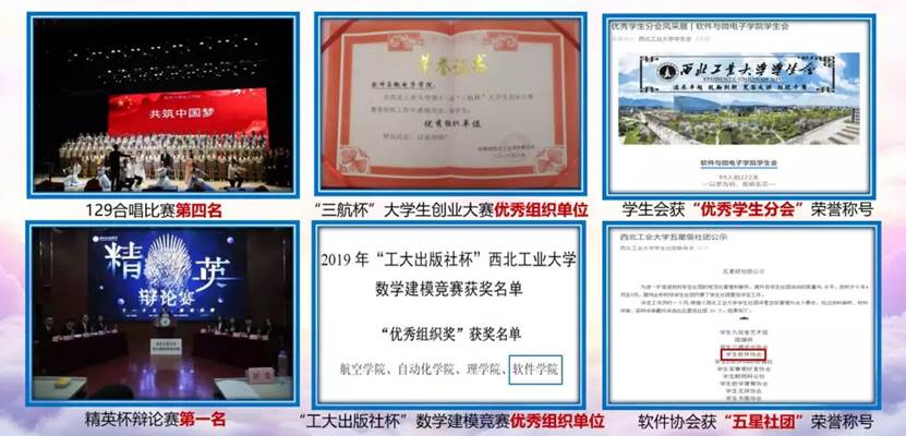获129合唱比赛第四名,精英辩论赛第一名,三航杯创业大赛和数模比赛优秀组织单位奖,学生会被评为“优秀学生分会”,软件协会被评为 “五星级社团”。
