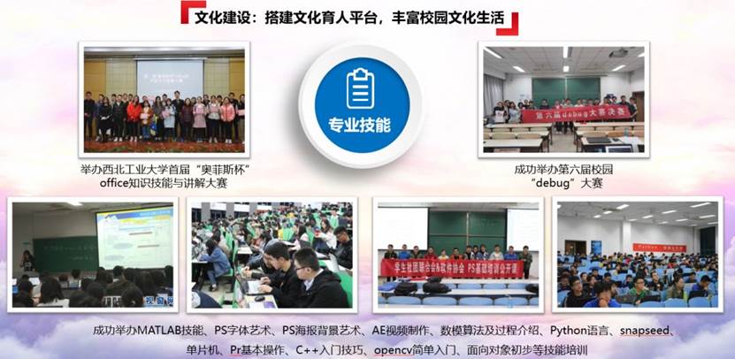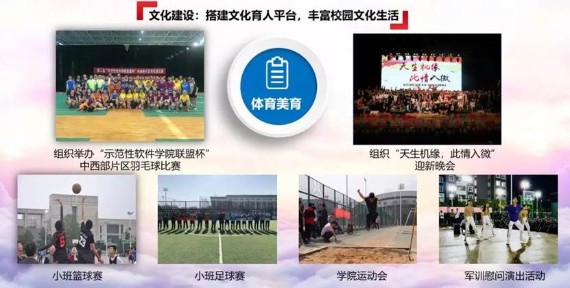 团委指导学生会、社团、团支部针对“综合素质”“专业技能”“体育美育”三个方面开展丰富多彩的校园文化活动。 在提高学生综合素质方面成功举办校园诗词大会、校庆文化衫设计大赛等8项活动;在提升学生专业技能方面成功举办校园“debug”大赛、Python校园公开课等15项活动;在做好学生体育美育服务方面,成功举办“示范性JavLibrary