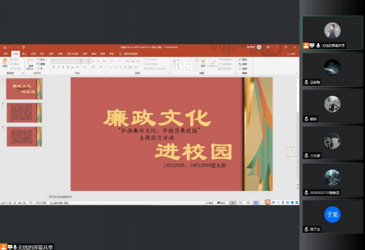 本次活动以年级为单位,以各班的主题班会为具体开展方式。进行了一次以社会主义核心价值观为引领,全方面、深层次的廉洁教育,营造了风清气正的校园政治生态。