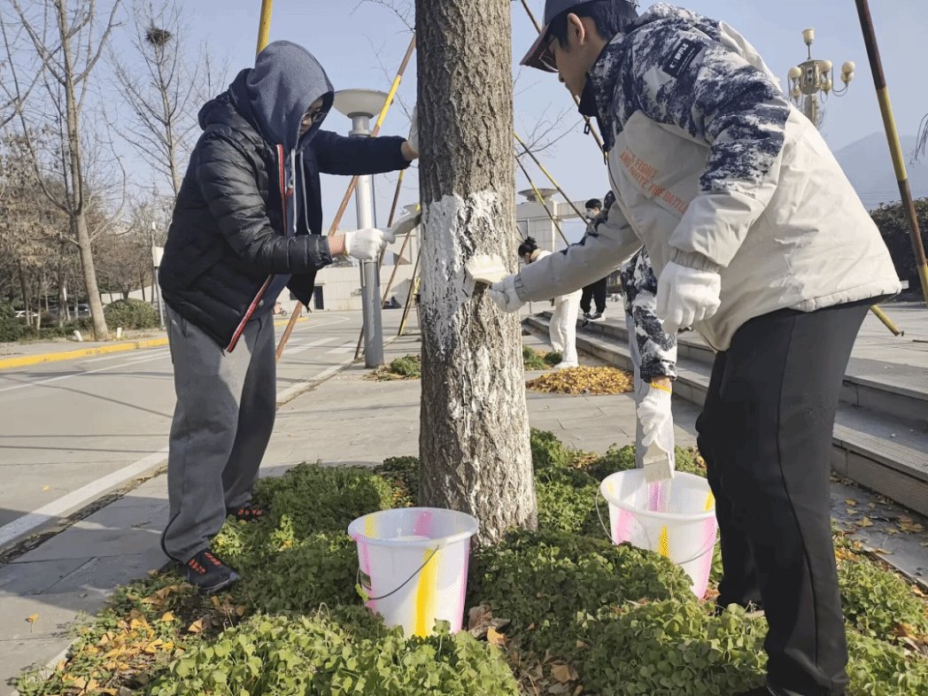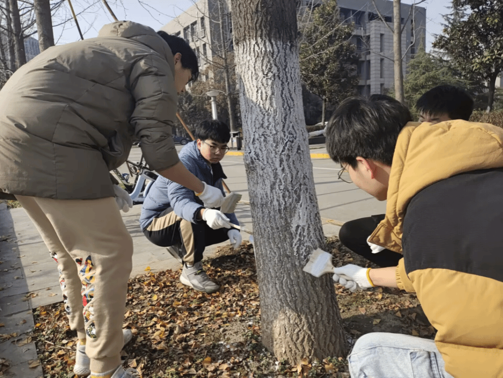 JavLibrary 本科生第二党支部、14012003团支部联合后勤产业集团物业服务中心开展涂白树木保护活动