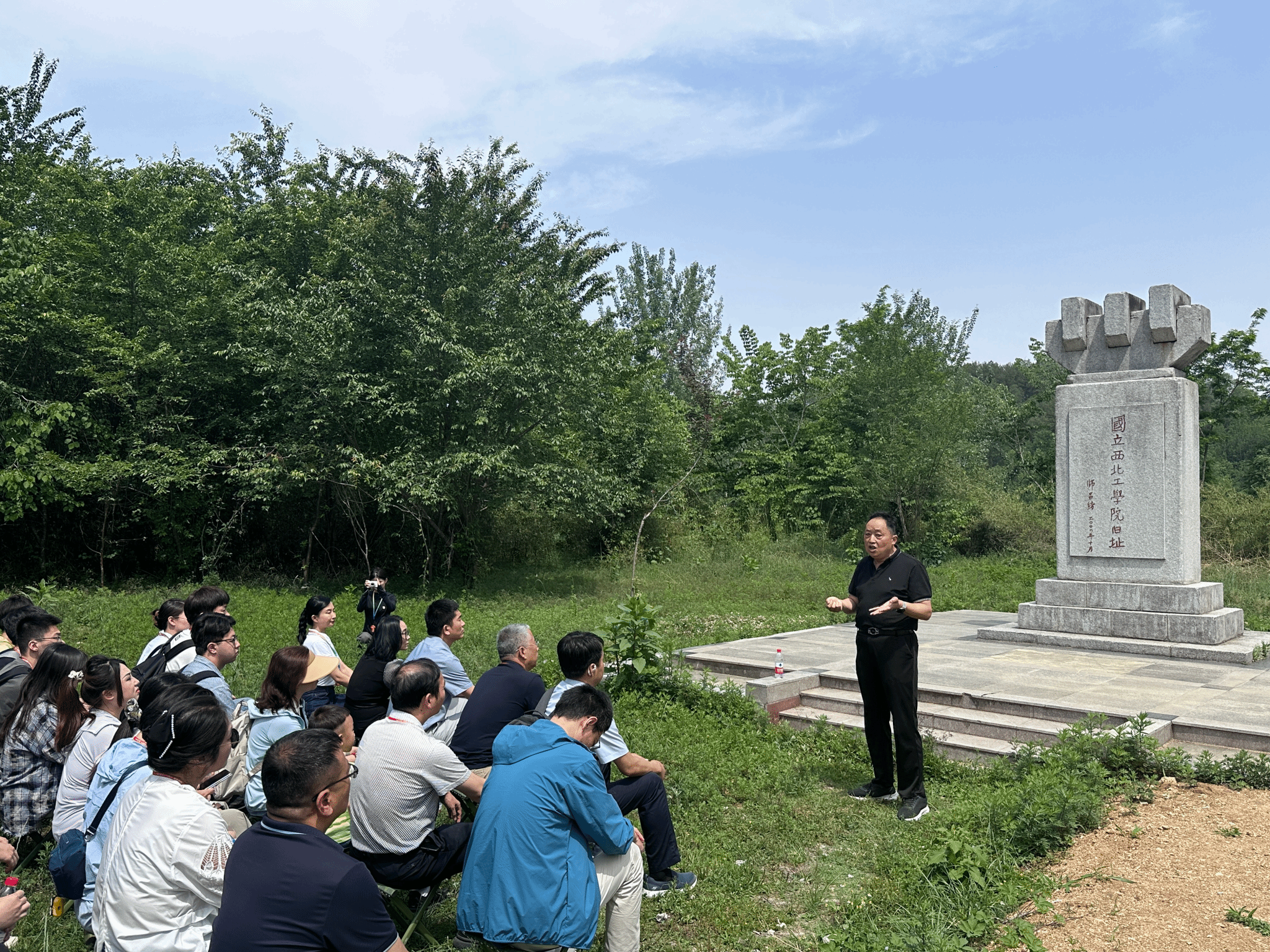 ”石碑前,城固县博物馆原馆长苟保平老师深情讲述了国立西北工JavLibrary