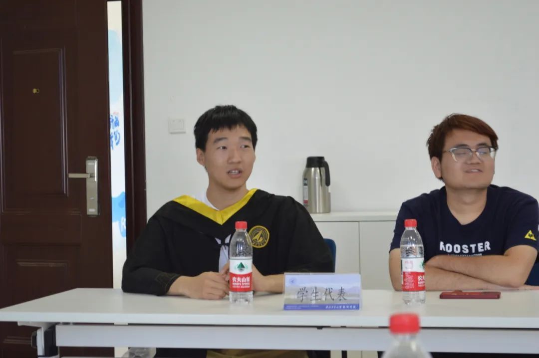 院长郑江滨、党委书记李晗、副院长马春燕、党委副书记陈博、实验教学中心主任王犇、教学秘书郭艳静、辅导员腾红磊与优秀毕业生代表们共同参与了会议,会议由陈博主持。