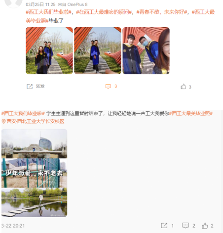 本次活动旨在以“创意毕业照”为核心,吸引广大毕业生使用“微博”APP进行毕业照展示,留下专属于毕业生们的记忆碎片,也为工大留下一份特殊的礼物。
