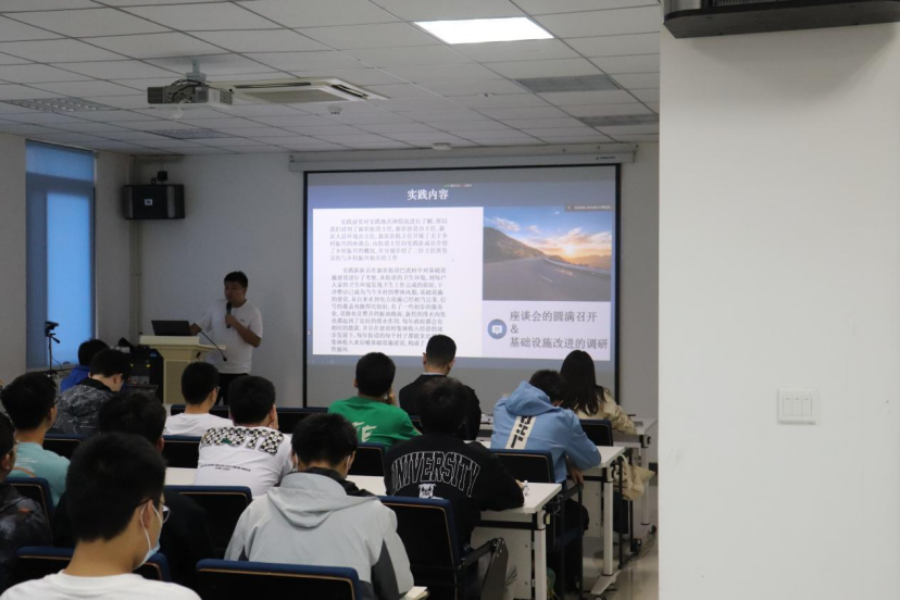 潘泽铭队长介绍了实践队的目的:以返乡大学生的角度观察国家政策对乡镇的影响。实践队通过走访调研,与乡镇干部和基层百姓进行交流沟通,了解了广大基层干部所谱写的无数感人事迹,从亲眼所见中找到乡镇的变化与未来,感受我国脱贫攻坚以及乡村振兴取得的前所未有之大成就。队员们切实感受到了家乡的发展潜力,对社会主义制度的优越性在乡镇中的体现有了进一步的了解。