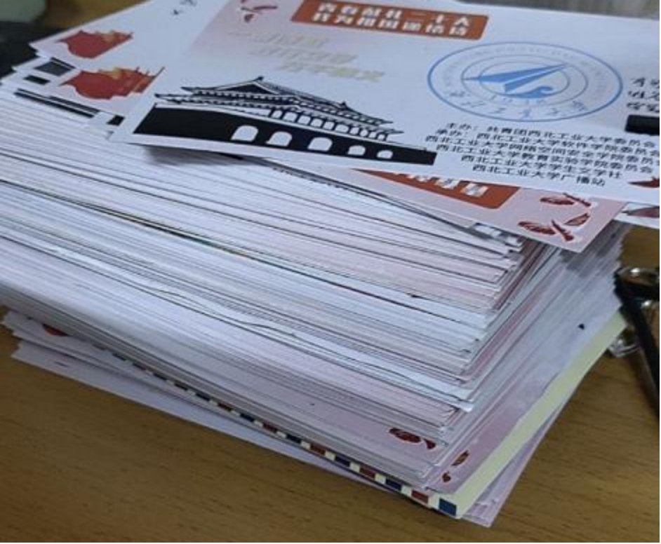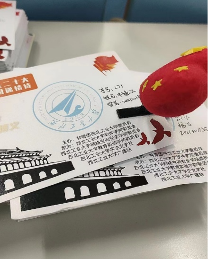 文学社成员负责评分。参赛作品也是佳作频出,或如错彩镂金,或如芙蓉出水,字句间流露出对伟大祖国的感恩与赞颂。很多同学不仅在明信片上书写诗篇,还用心装饰了明信片,动人的语句配上优美的图画,十分赏心悦目。经过三天左右的集中评审,最终一些作品脱颖而出,获得评委的一致认可。