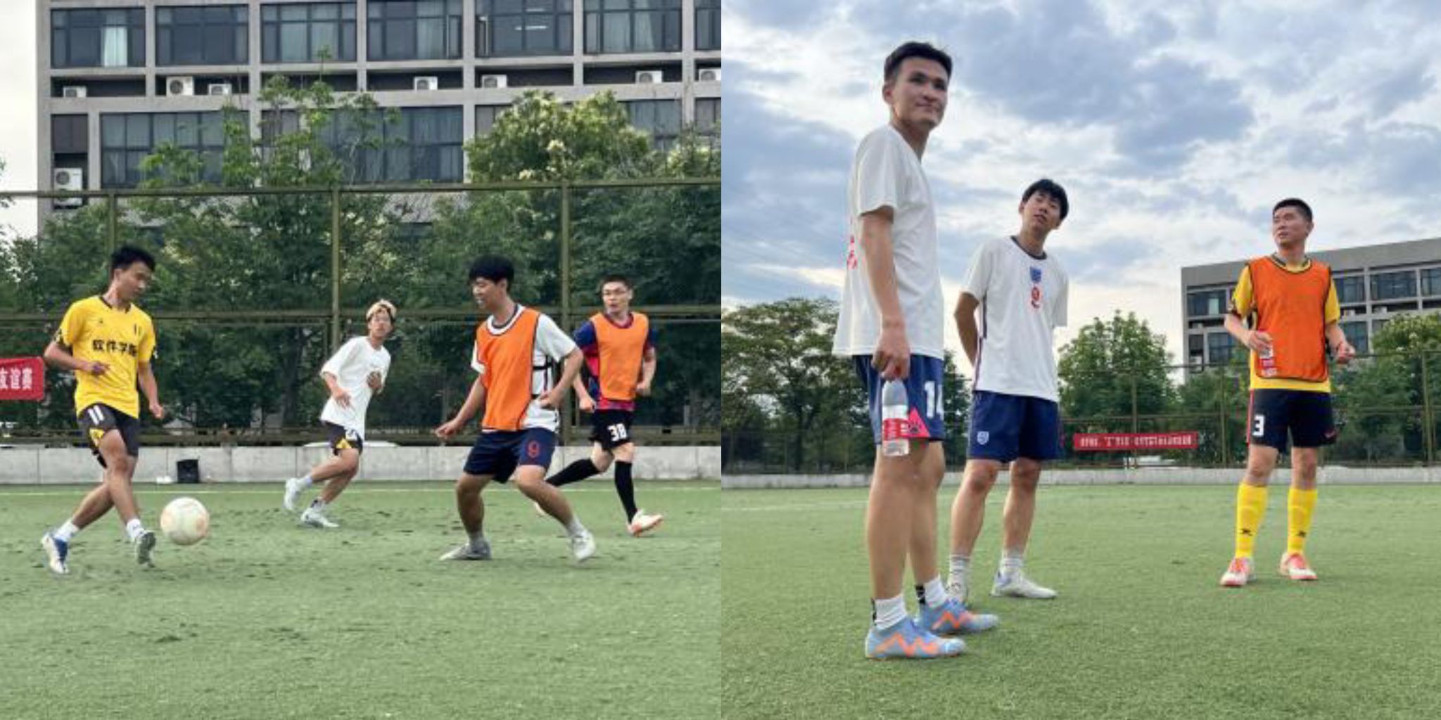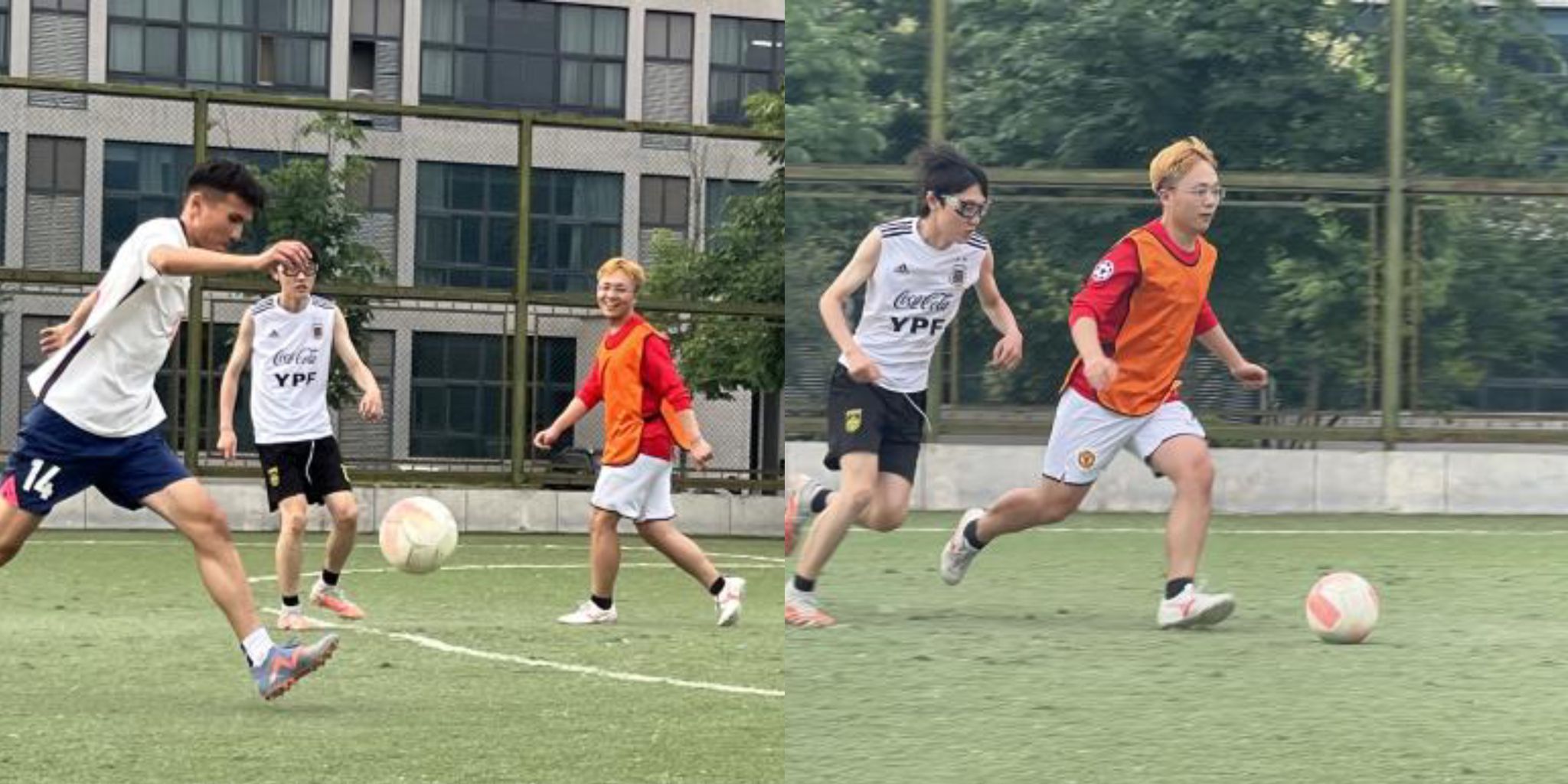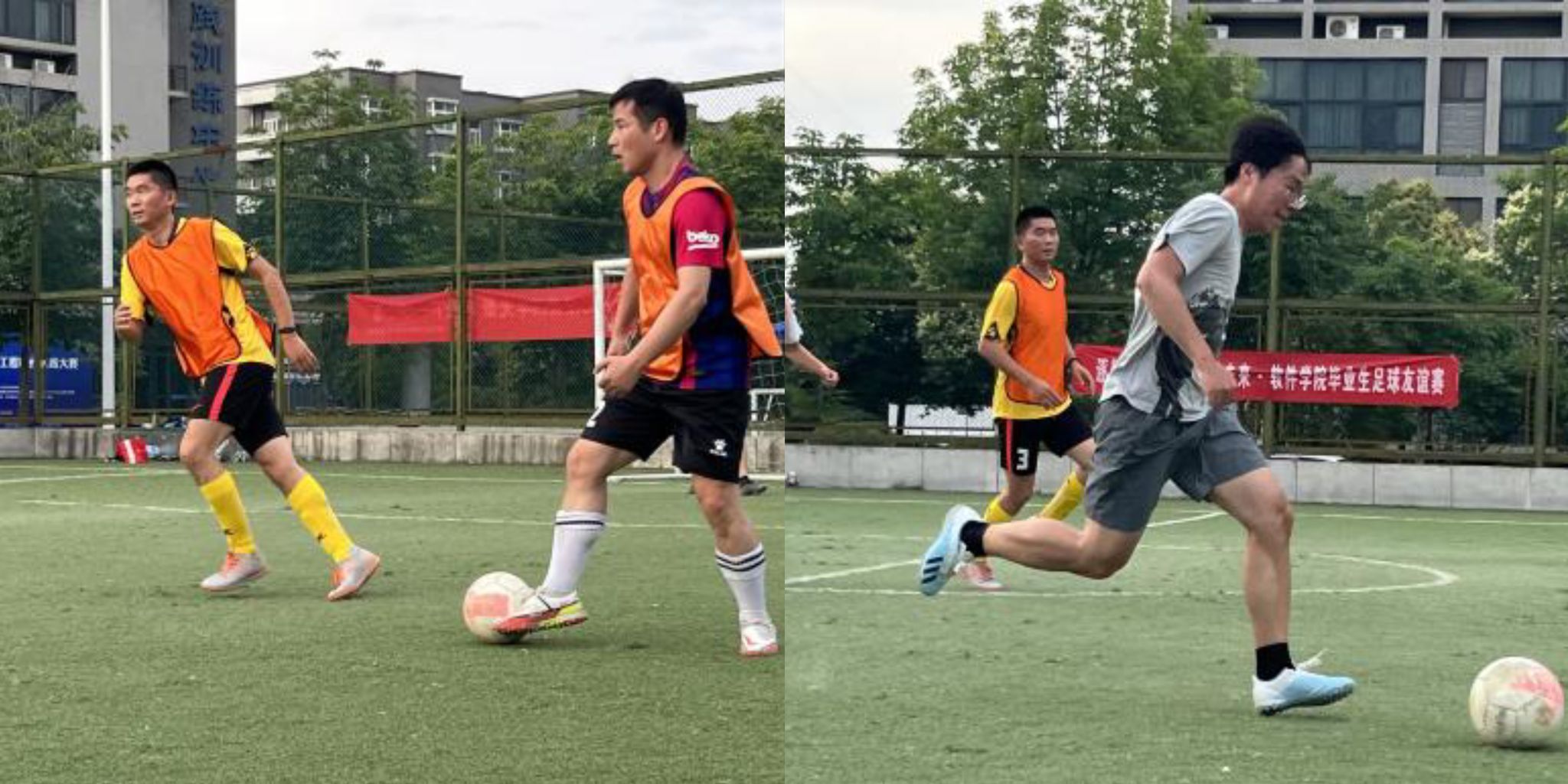 比赛开始时,双方处于试探性阶段,踢得都比较保守,随着赛程推进,双发对彼此逐渐熟悉,比赛越来越激烈起来。比赛过程跌宕起伏,上演了一场“领先-追平-再度领先”的好戏。双方队员各不相让,既有短传快攻、整体推进,又有单点抢断、防守反击、长传冲吊,你来我往,精彩纷至,展现出了可贵的竞技精神和顽强的拼搏精神,积极的拼抢、温暖的关怀。充分地将团队的风采淋漓展现,一粒粒进球更是点燃在场所有参与者的热情。没有拘束,没有顾及,欢声笑语成为了球场上的主旋律。