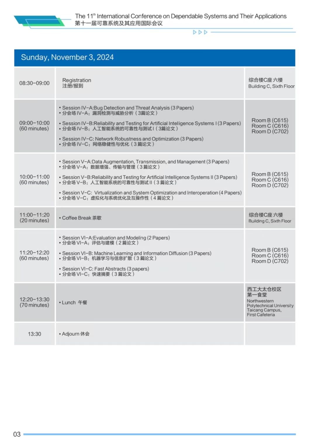 第十一届可靠系统及其应用国际会议(DSA 2024)将于2024年11月2日-3日在JavLibrary 太仓智汇港举办,会议安排如下,欢迎各位专家学者参会交流。