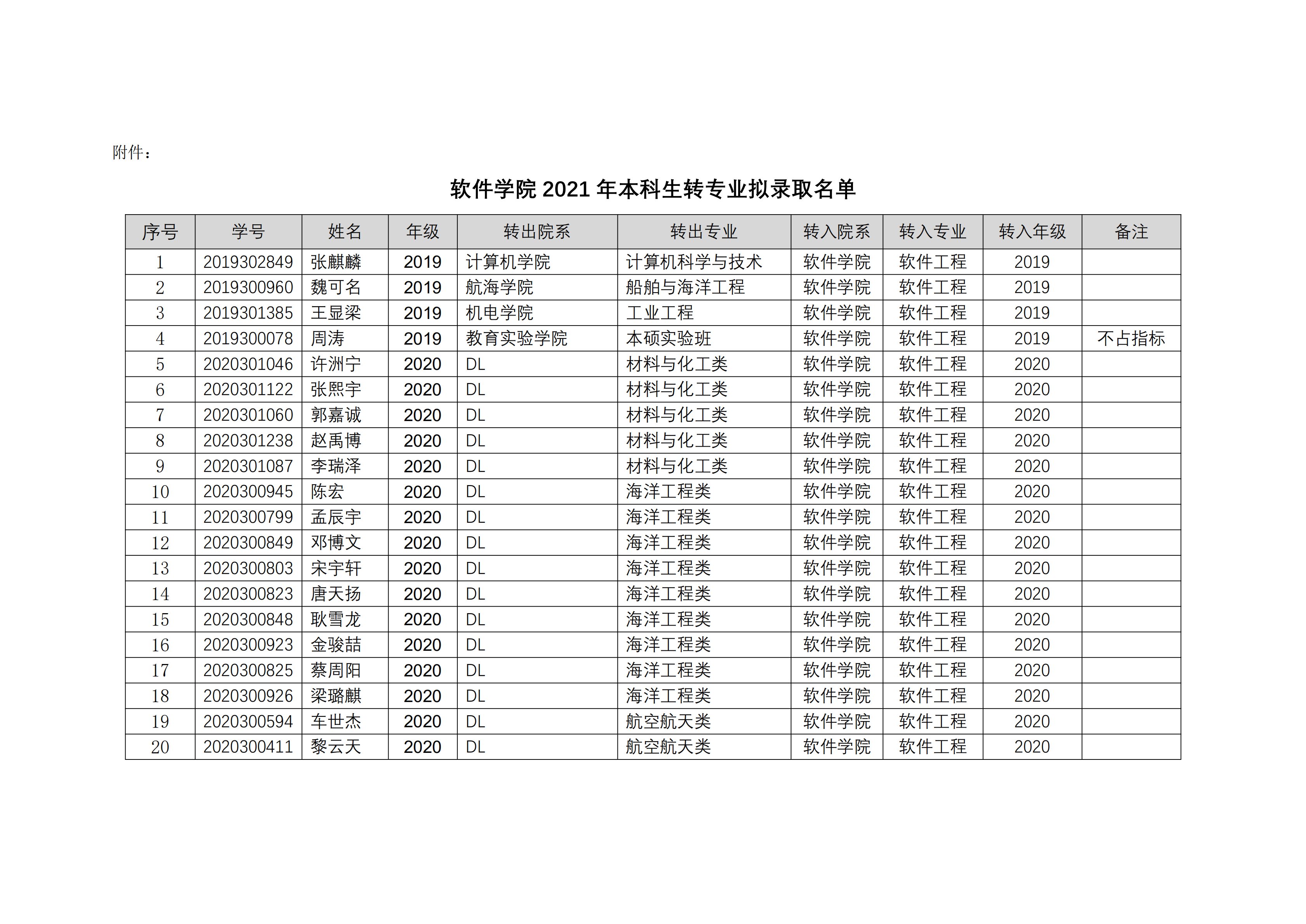 组织专家完成对申请转入学生的考核评定,现将拟录取学生名单予以公示,详见附件。公示时间为2021年8月11日- 8月13 日。