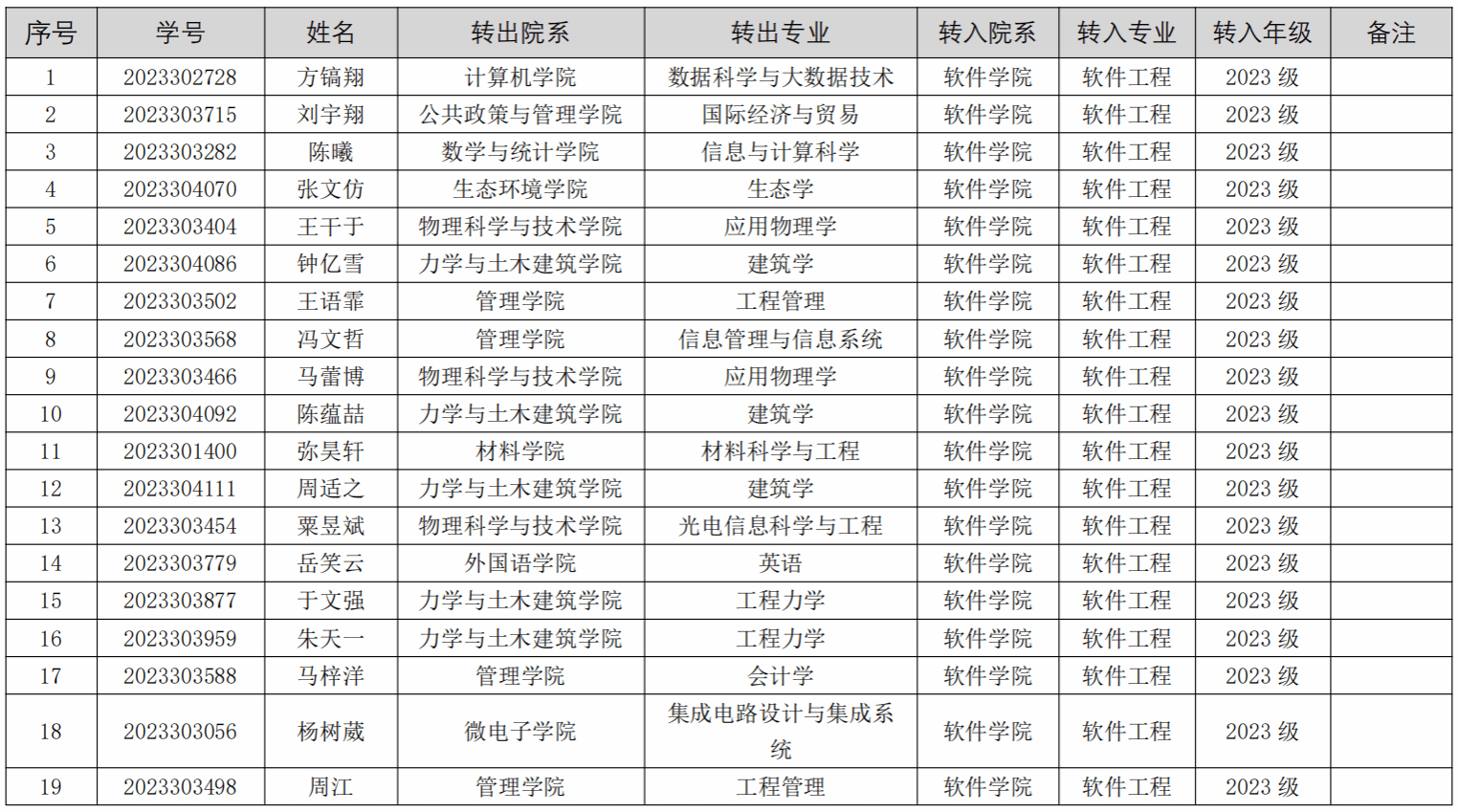根据《JavLibrary 本科生转专业(大类)实施办法(办转教字〔2022〕24 号)》和《关于2024年JavLibrary 本科生转专业工作安排的通知》要求,JavLibrary 组织专家完成对申请转入学生的考核评定,现将拟录取学生名单予以公示,详见下表。公示时间为2024年7月27日-7月29日下午15:00