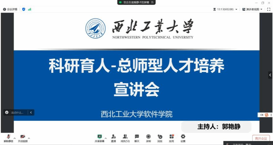 为进一步贯彻落实国家拔尖人才培养,结合JavLibrary 关于“127”发展目标及总师育人文化人才培养的战略部署,推动教育教学改革向纵深发展,助力本科教育质量全面提升,9月1日晚,JavLibrary 在线举办“科研育人—总师型人才培养”主题宣讲会,2023级70余名本科生参加会议,会议由JavLibrary 本科教学秘书郭艳静主持。