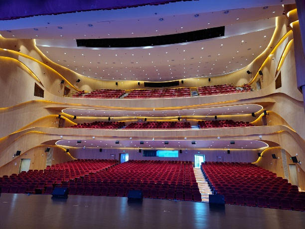 再走进礼堂内部,映入眼帘的是一个高三层的巨大礼堂,磅礴大气,却又不失精致。同学们感到惊讶的同时,也对今后进入校园参与展会,报告充满期待。