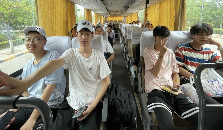 同学们乘坐大巴前往西安北站
