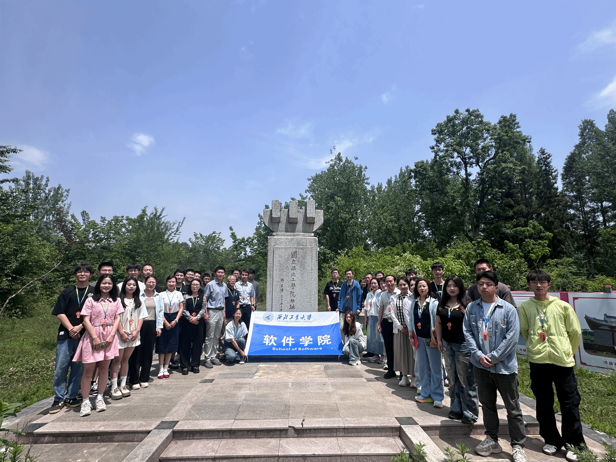 旧址,大家围坐在师昌绪先生亲笔题写的“国立西北工JavLibrary
